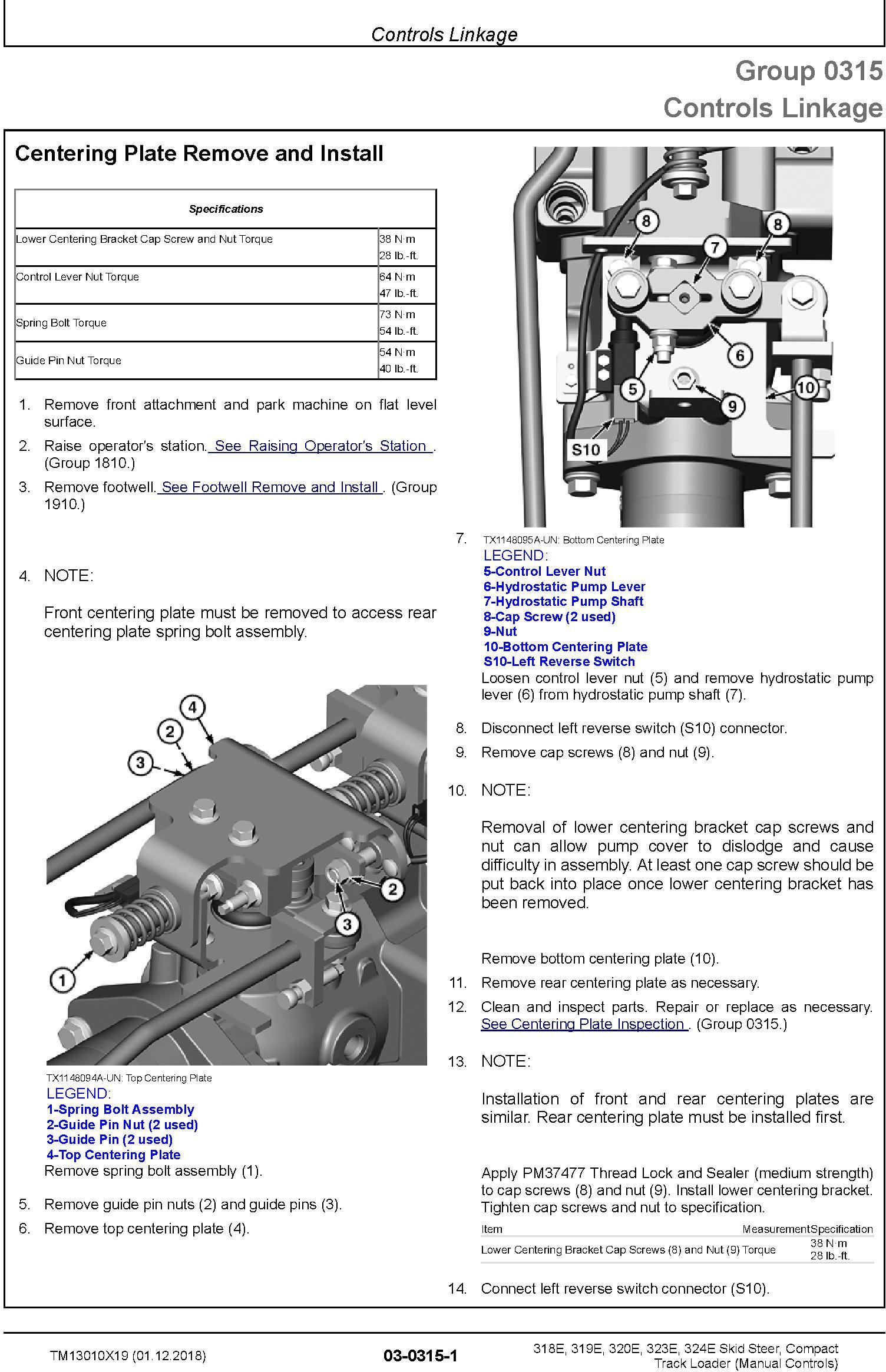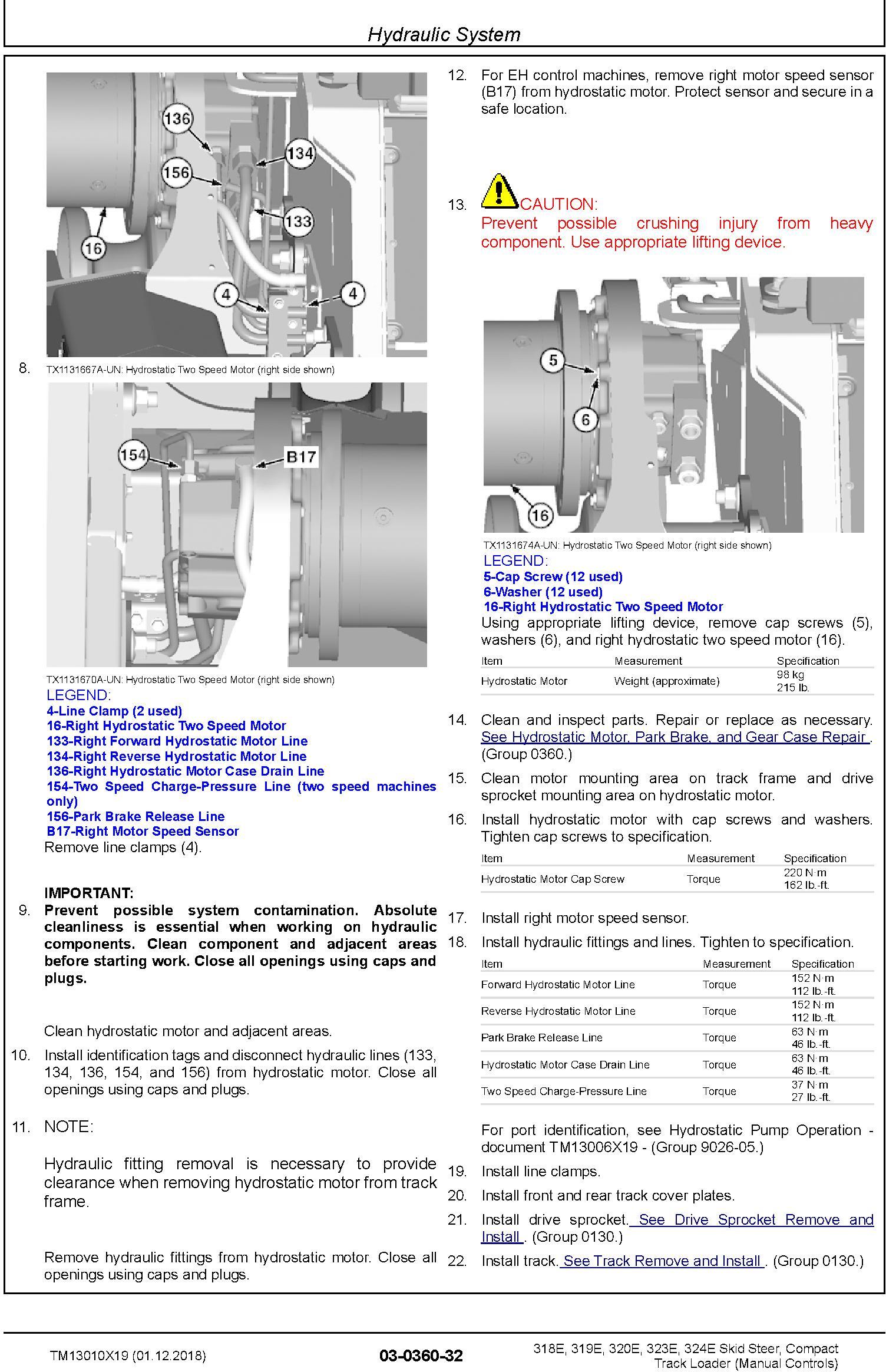 John Deere 318E 319E 320E 323E 324E Skid Steer Compact Track Loader Repair Technical Manual TM13010X19