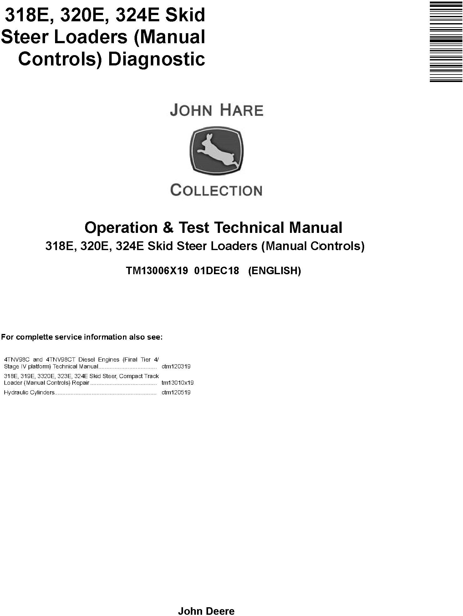 John Deere 318E 320E 324E Skid Steer Loader Operation Test Technical Manual TM13006X19