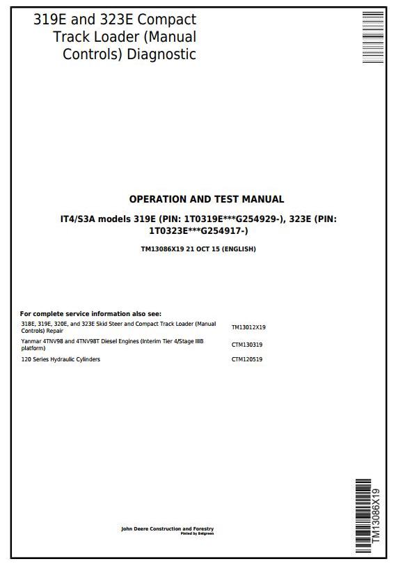 John Deere 319E 323E Compact Track Loader Diagnostic Operation Test Manual TM13086X19