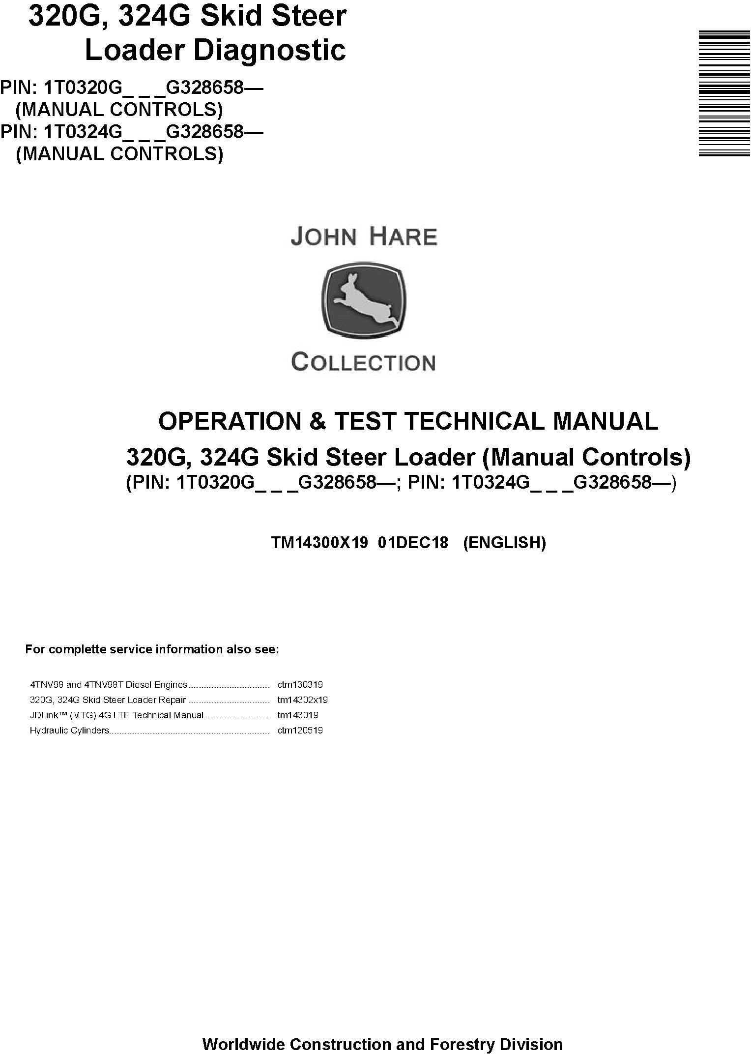 John Deere 320G 324G Skid Steer Loader Diagnostic Operation Test Manual TM14300X19