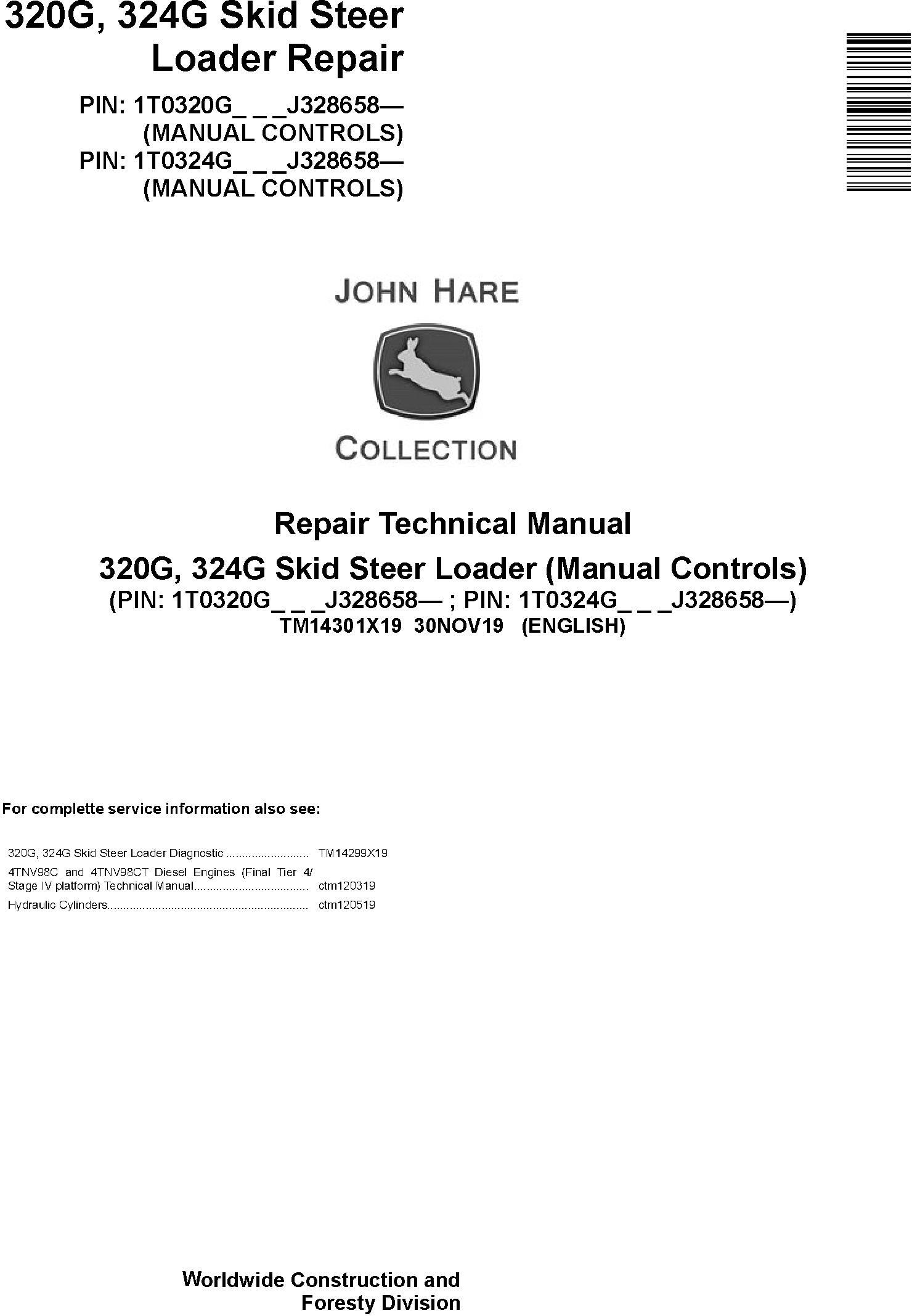 John Deere 320G 324G Skid Steer Loader Repair Technical Manual TM14301X19