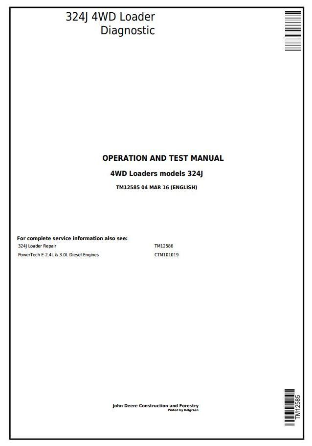 John Deere 324J 4WD Loader Diagnostic Operation Test Manual TM12585