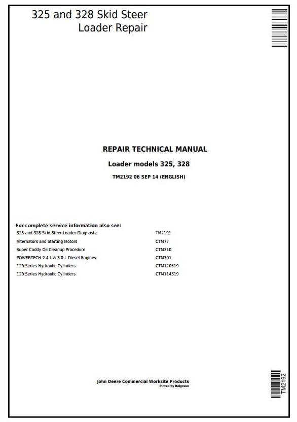John Deere 325 328 Skid Steer Loader Repair Technical Manual TM2192