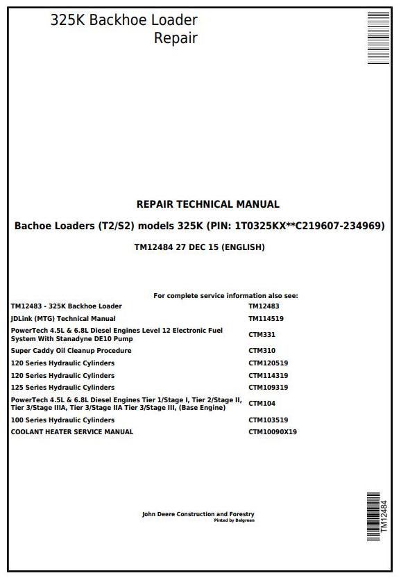 John Deere 325K Backhoe Loader Repair Technical Manual TM12484
