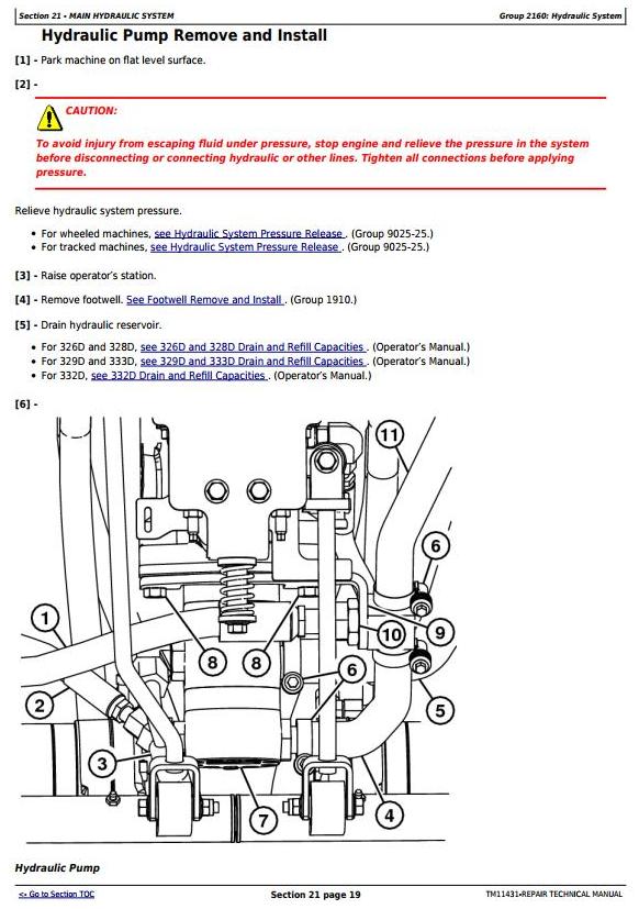 John Deere 326D 328D 329D 332D 333D Skid Steer Loader Repair Technical Manual TM11431