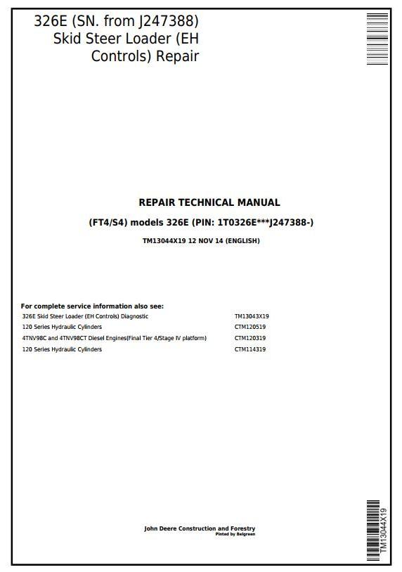 John Deere 326E Skid Steer Loader Repair Technical Manual TM13044X19