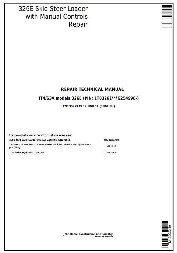 John Deere 326E Skid Steer Loader Repair Technical Manual TM13092X19