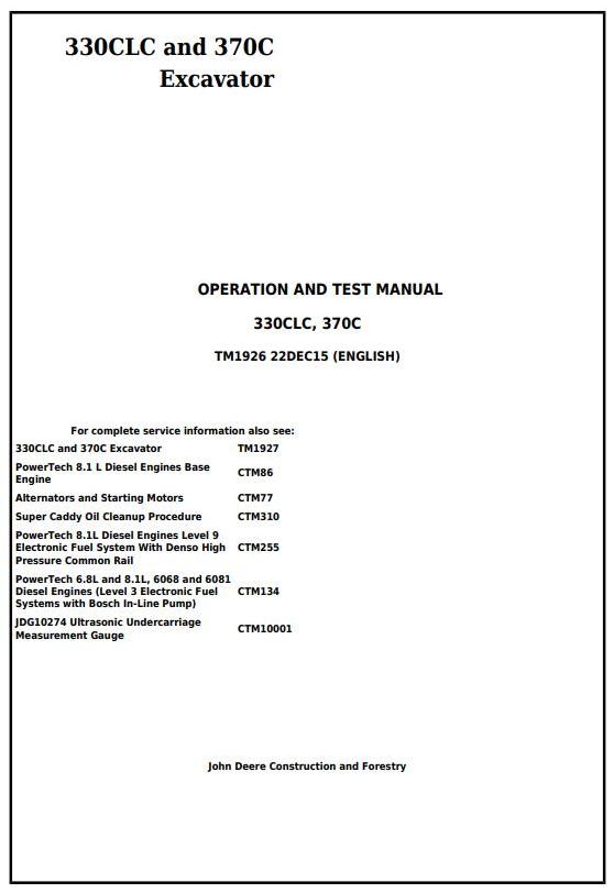 John Deere 330CLC 370C Operation and Test Manual TM1926
