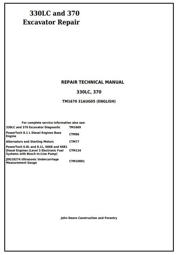 John Deere 330LC 370 Repair Technical Manual TM1670