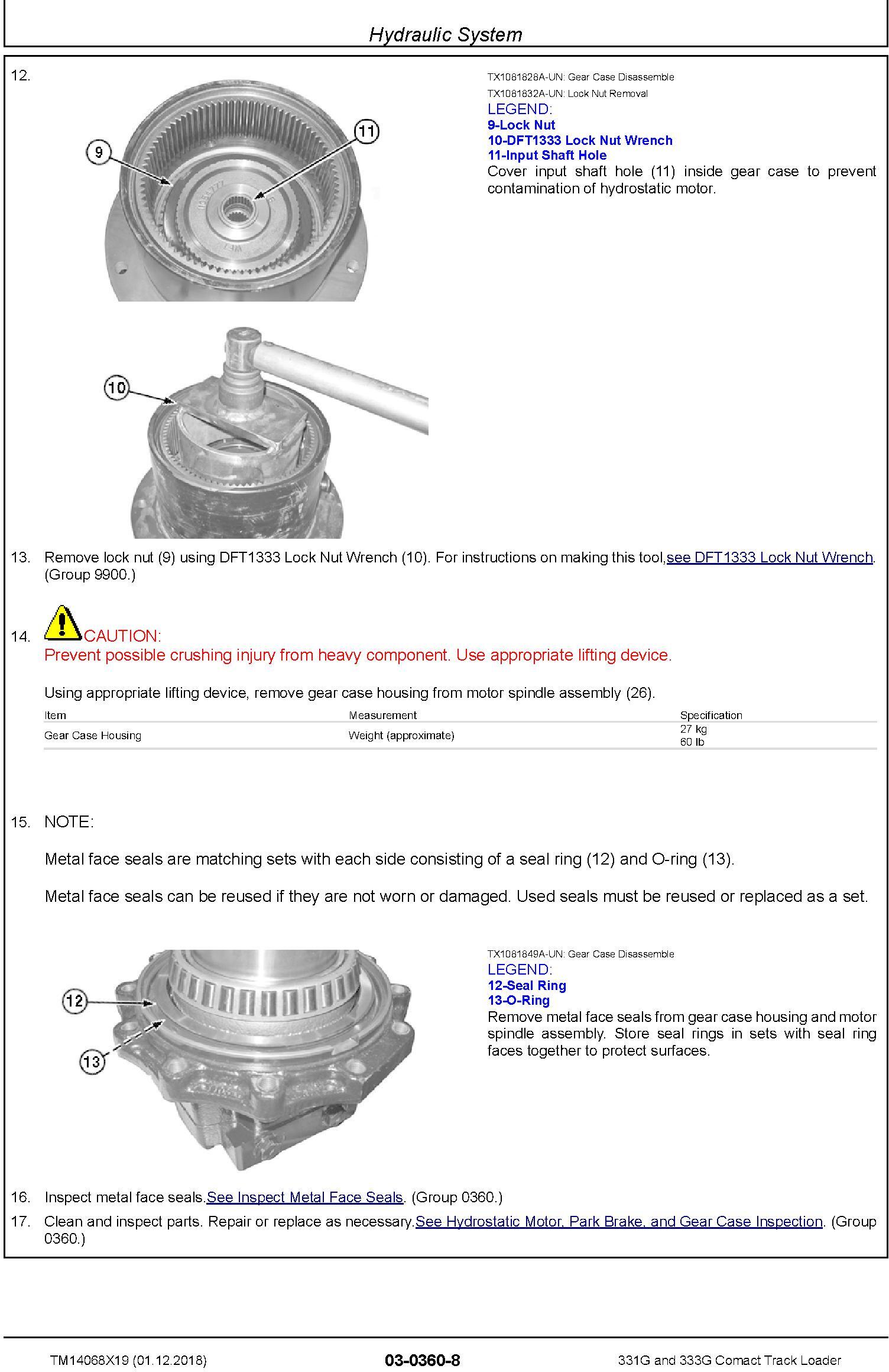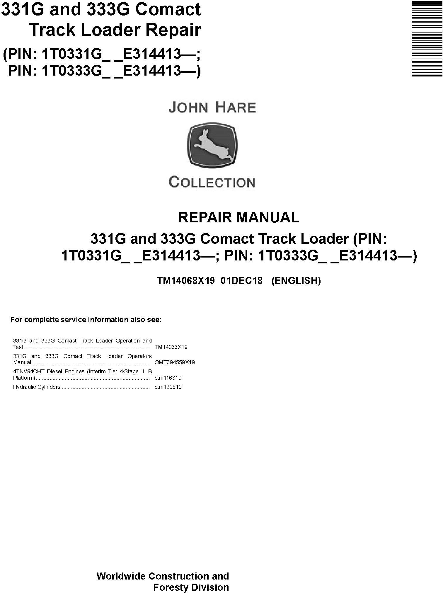 John Deere 331G 333G Compact Track Loader Repair Manual TM14068X19