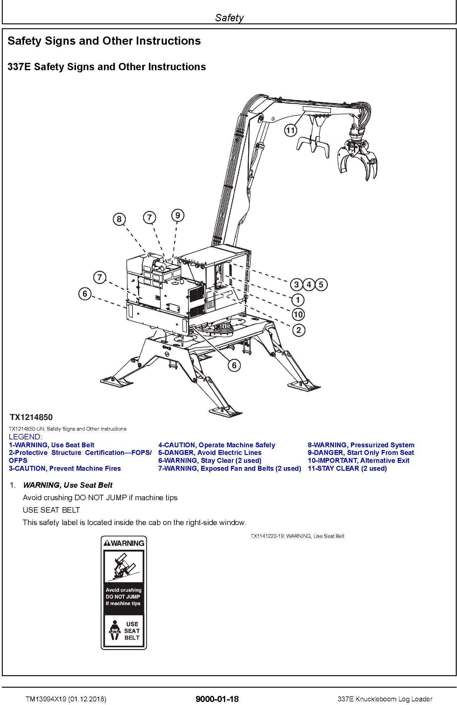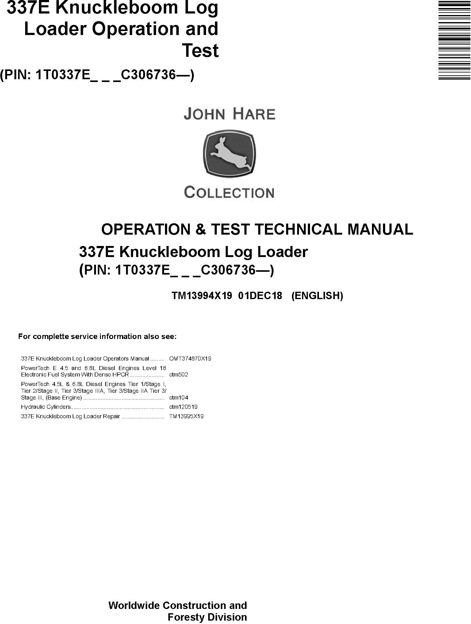 John Deere 337E Knuckleboom Log Loader Operation Test Technical Manual TM13994X19