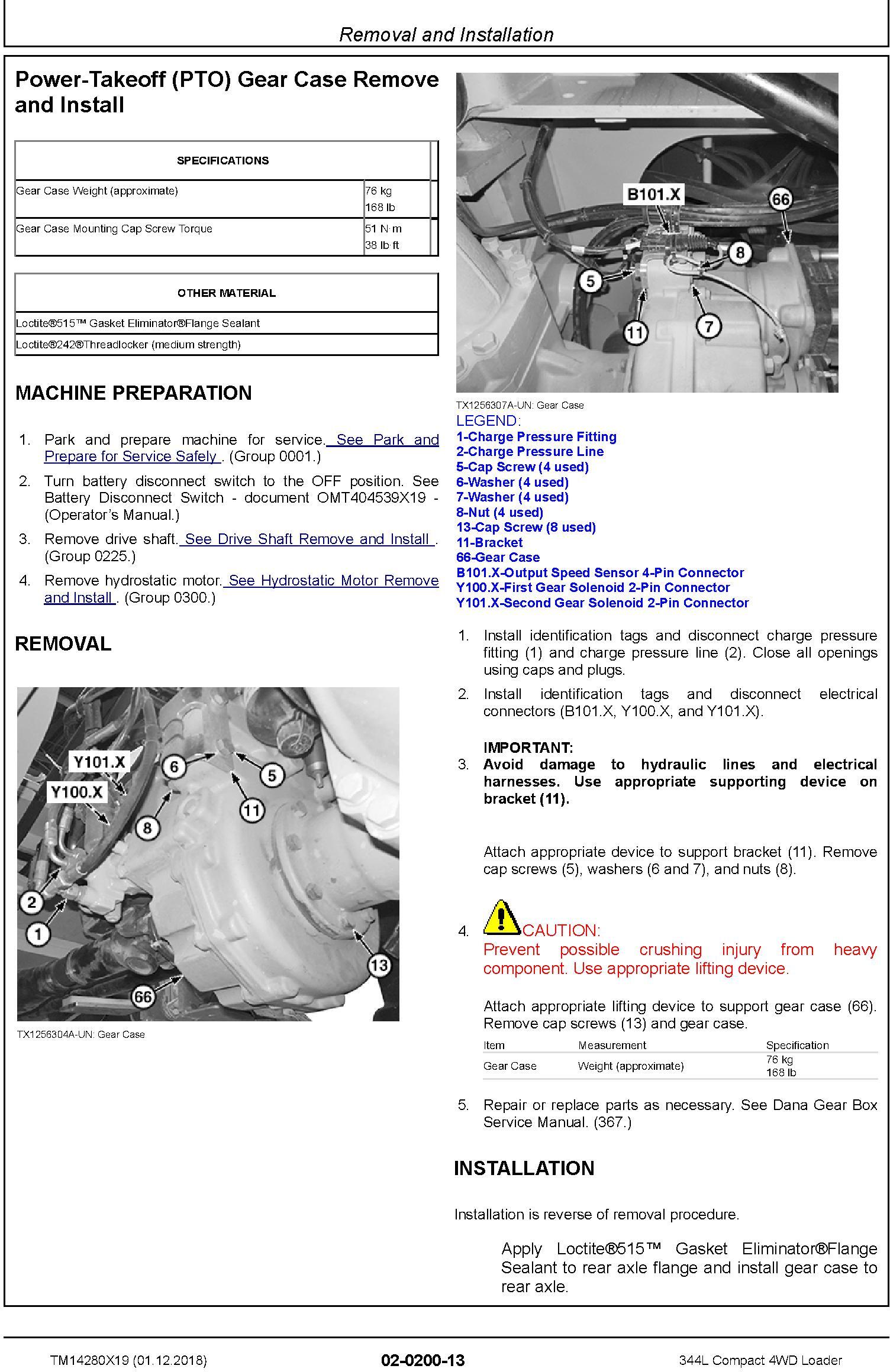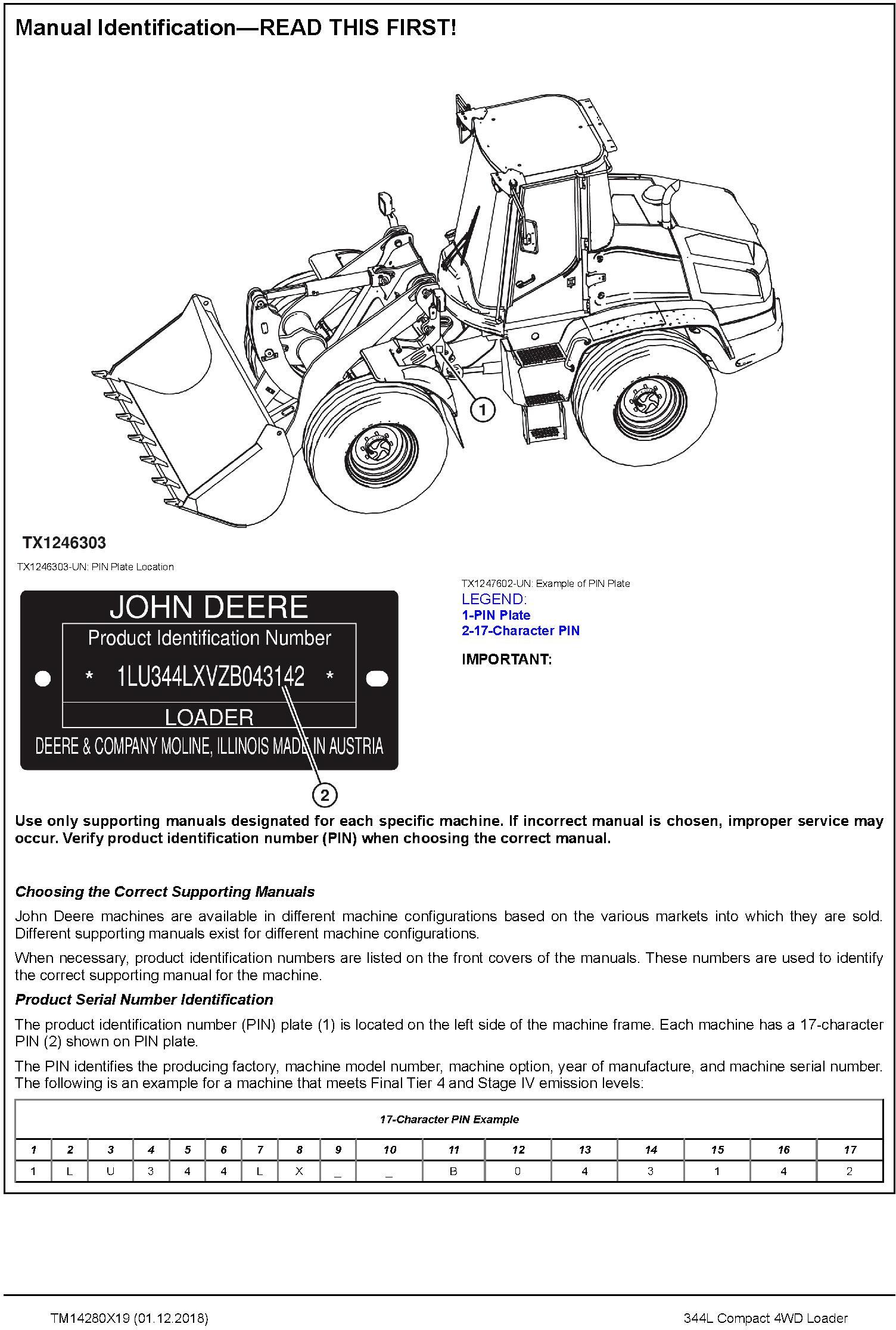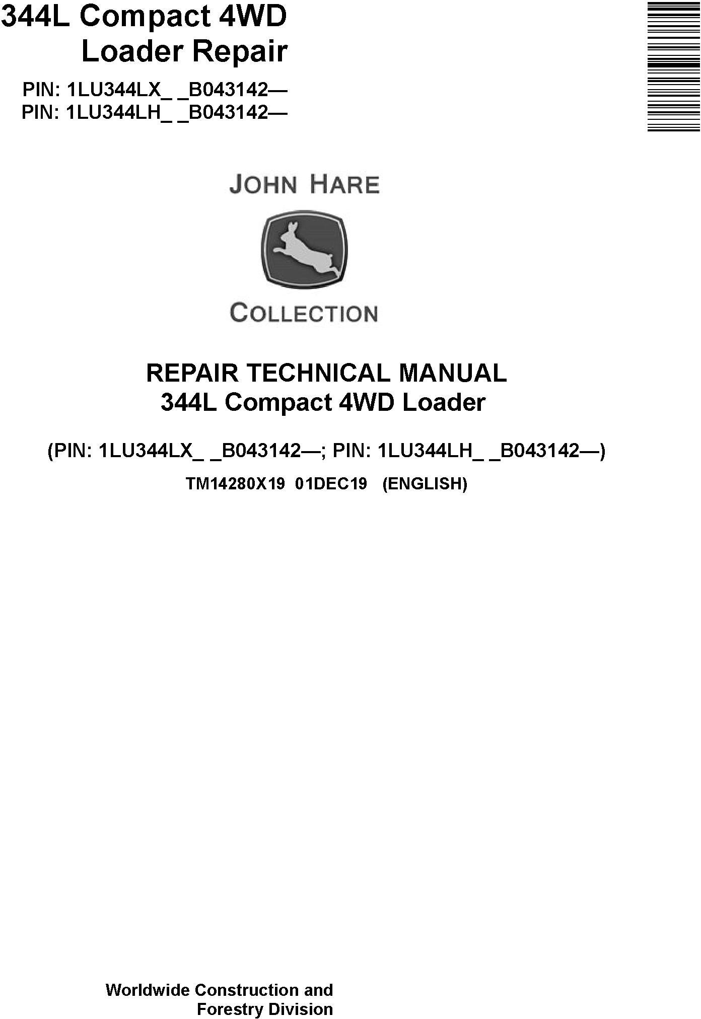 John Deere 344L Compact 4WD Loader Repair Technical Manual TM14280X19