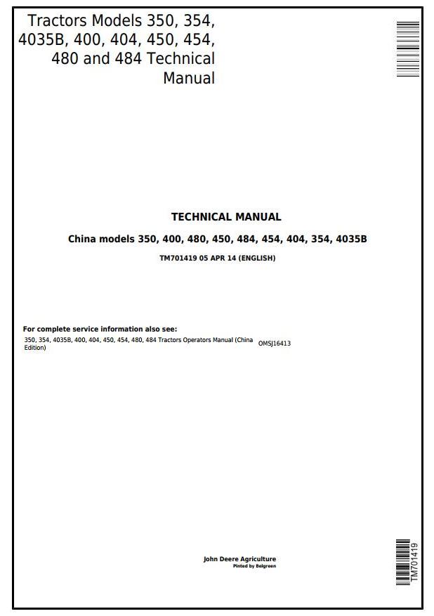 John Deere 350 to 484 China Tractor Technical Manual TM701419