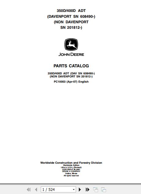 John Deere 350D 400D 350ADT 400ADT Parts Catalog PC10003