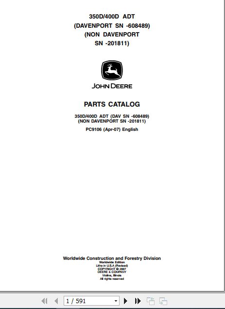 John Deere 350D 400D 350ADT 400ADT Parts Catalog PC9106