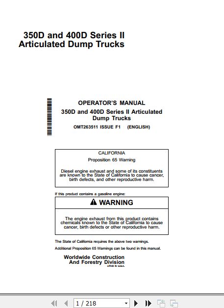 John Deere 350D 400D Series II Operators Manual OMT263511