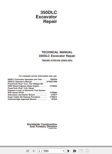 The Bookmarks of John Deere 350DLC Technical Repair Manual: