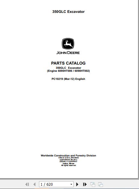 John Deere 350GLC Parts Catalog PC10219