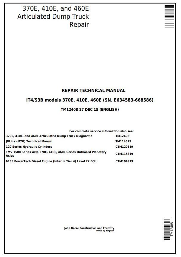 John Deere 370E 410E 460E Articulated Dump Truck Repair Technical Manual TM12408
