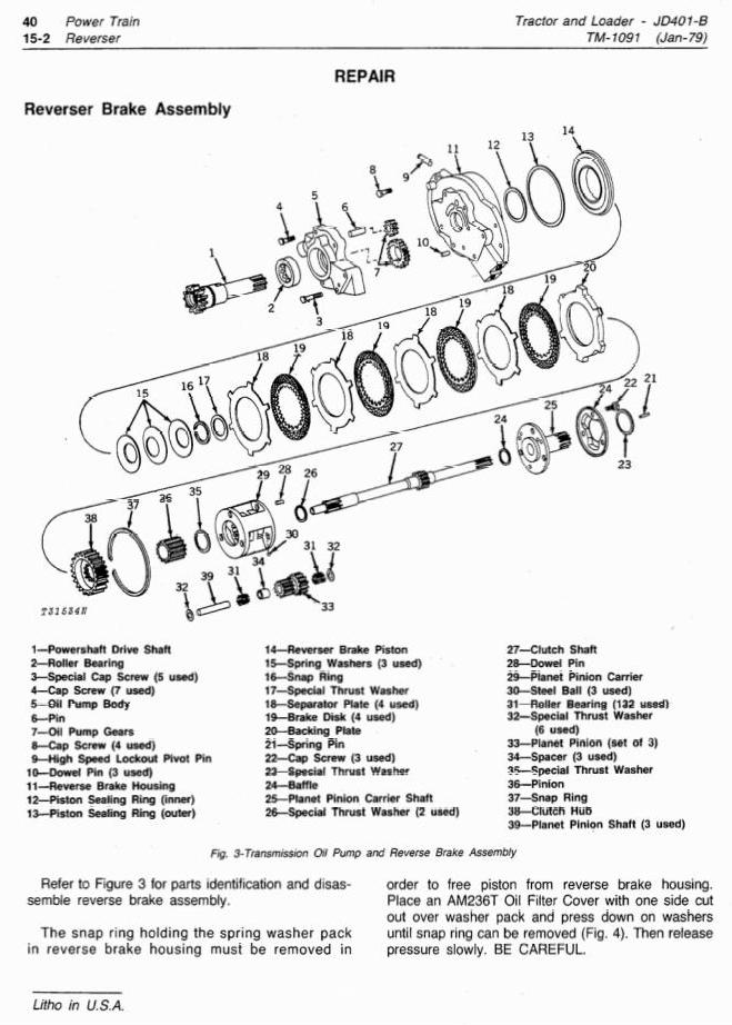 John Deere 401B Tractor Loader Technical Manual TM1091