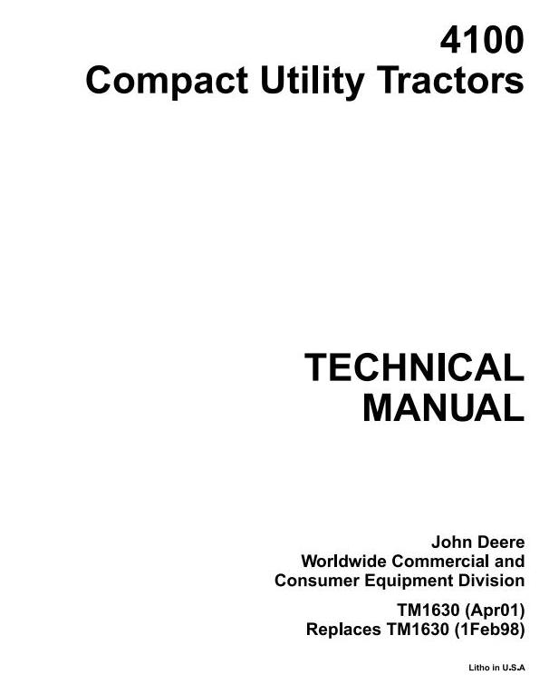 John Deere 4100 Compact Utility Tractor Technical Manual TM1630