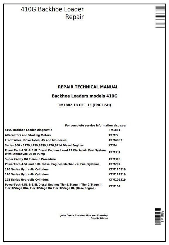 John Deere 410G Backhoe Loader Repair Technical Manual TM1882