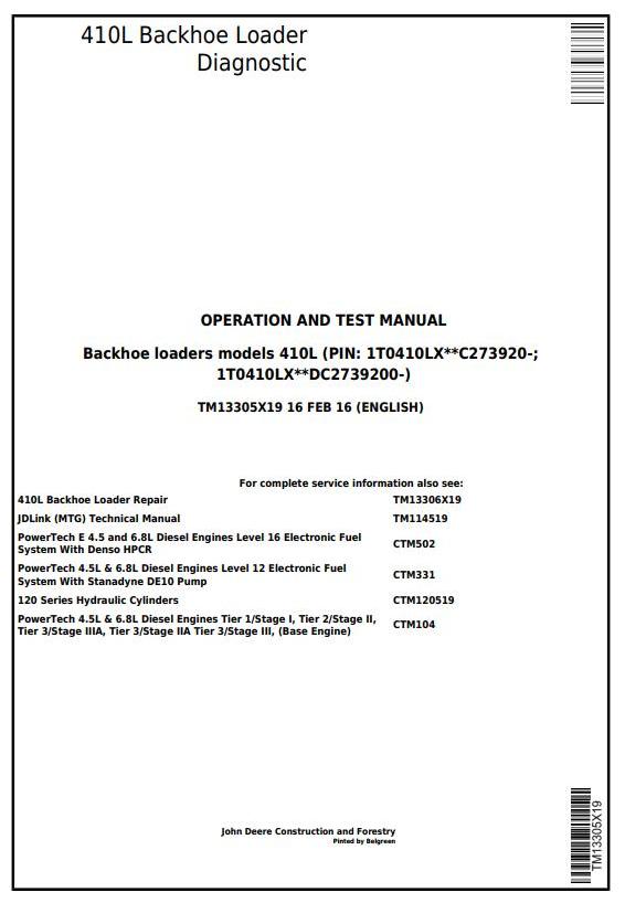 John Deere 410L Backhoe Loader Diagnostic Operation Test Manual TM13305X19