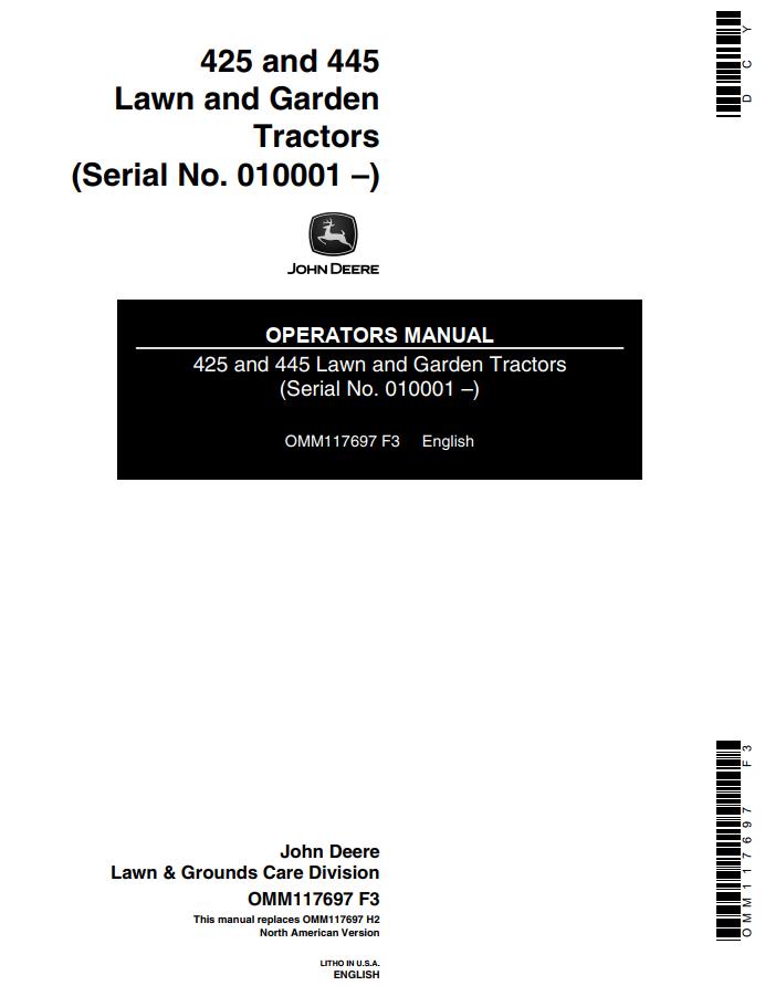 John Deere 425 445 Operators Manual OMM117697 (120 Pages)