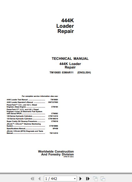 The Bookmarks of John Deere 444K Technical Repair Manual: