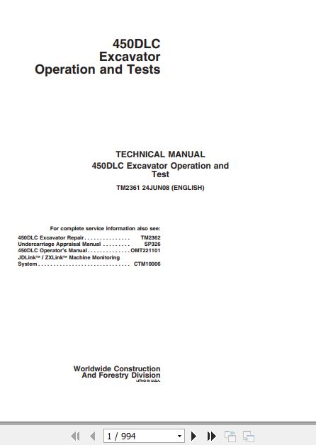 The Bookmarks of John Deere 450DLC Operation And Test Manual: