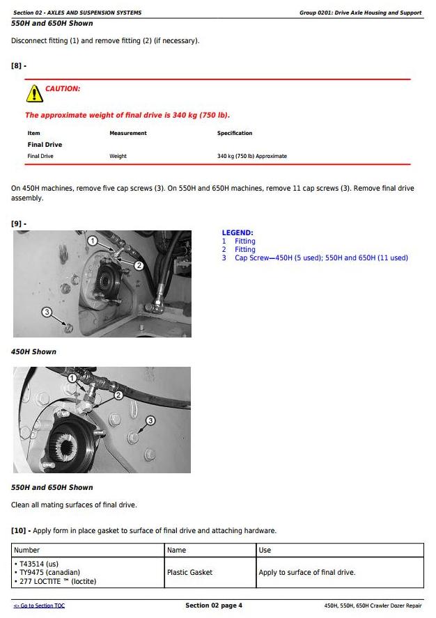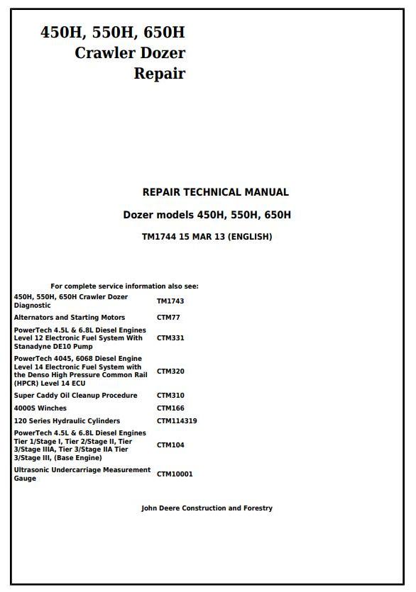 John Deere 450H 550H 650H Crawler Dozer Repair Technical Manual TM1744