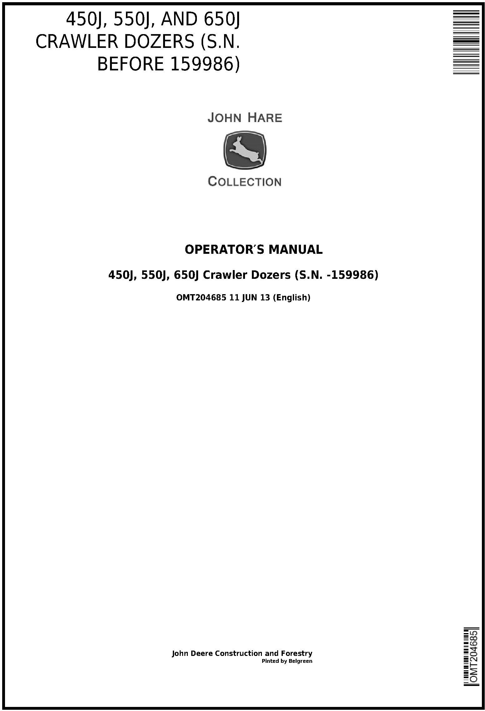 John Deere 450J 550J 650J Crawler Dozer Operator Manual OMT204685