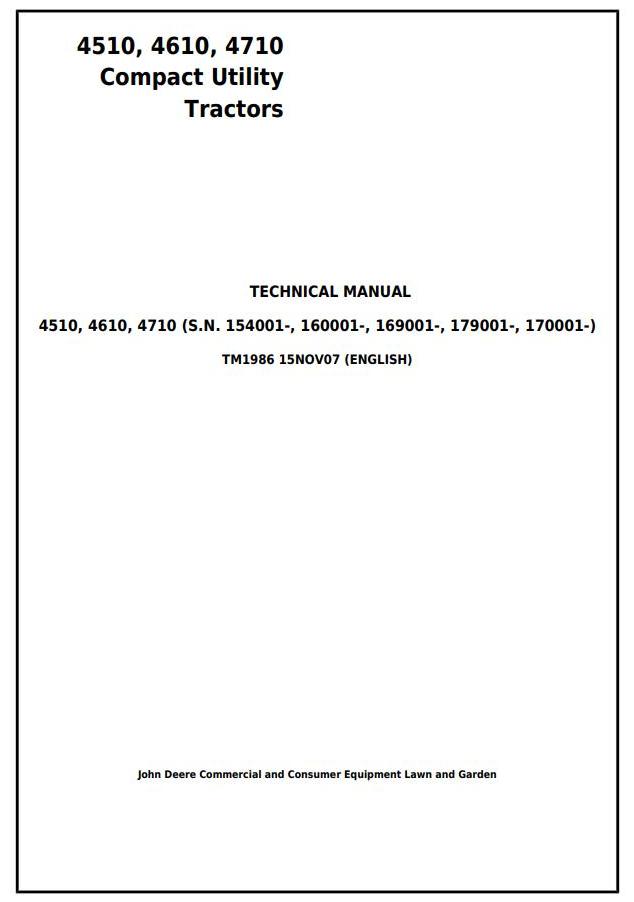 John Deere 4510 4610 4710 Compact Utility Tractor Technical Manual TM1986