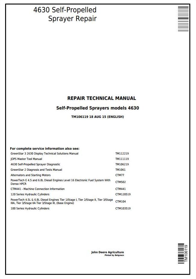 John Deere 4630 Self-Propelled Sprayer Repair Technical Manual TM106119