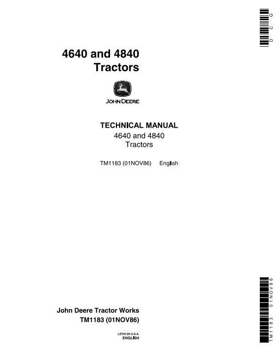 John Deere 4640 4840 Tractor Technical Manual TM1183