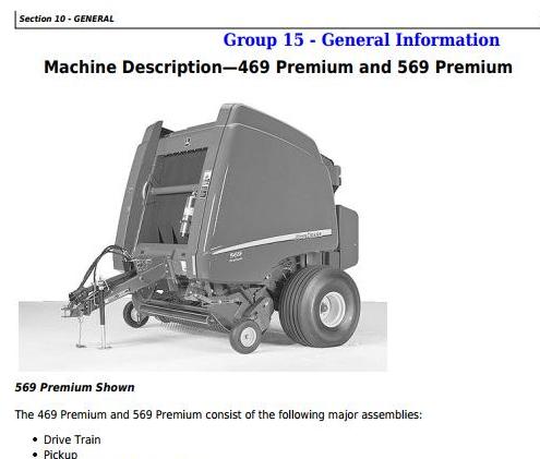 John Deere 469 569 Premium Hay Forage Round Balers Technical Manual TM121319