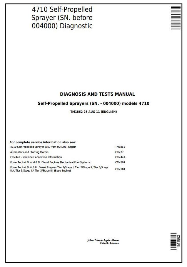 John Deere 4710 Self-Propelled Sprayer Diagnosis Test Manual TM1862