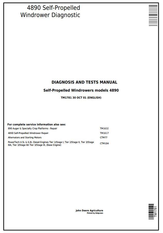 John Deere 4890 Self-Propelled Windrower Diagnosis Test Manual TM1781