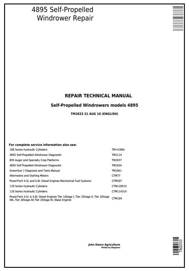 John Deere 4895 Self-Propelled Windrower Repair Technical Manual TM2033