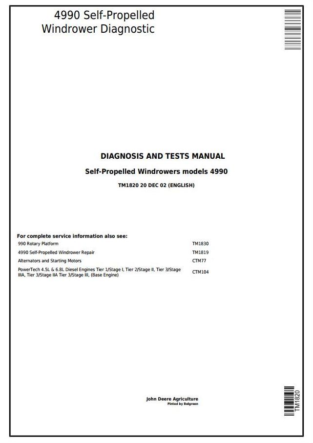 John Deere 4990 Self-Propelled Windrower Diagnosis Test Manual TM1820