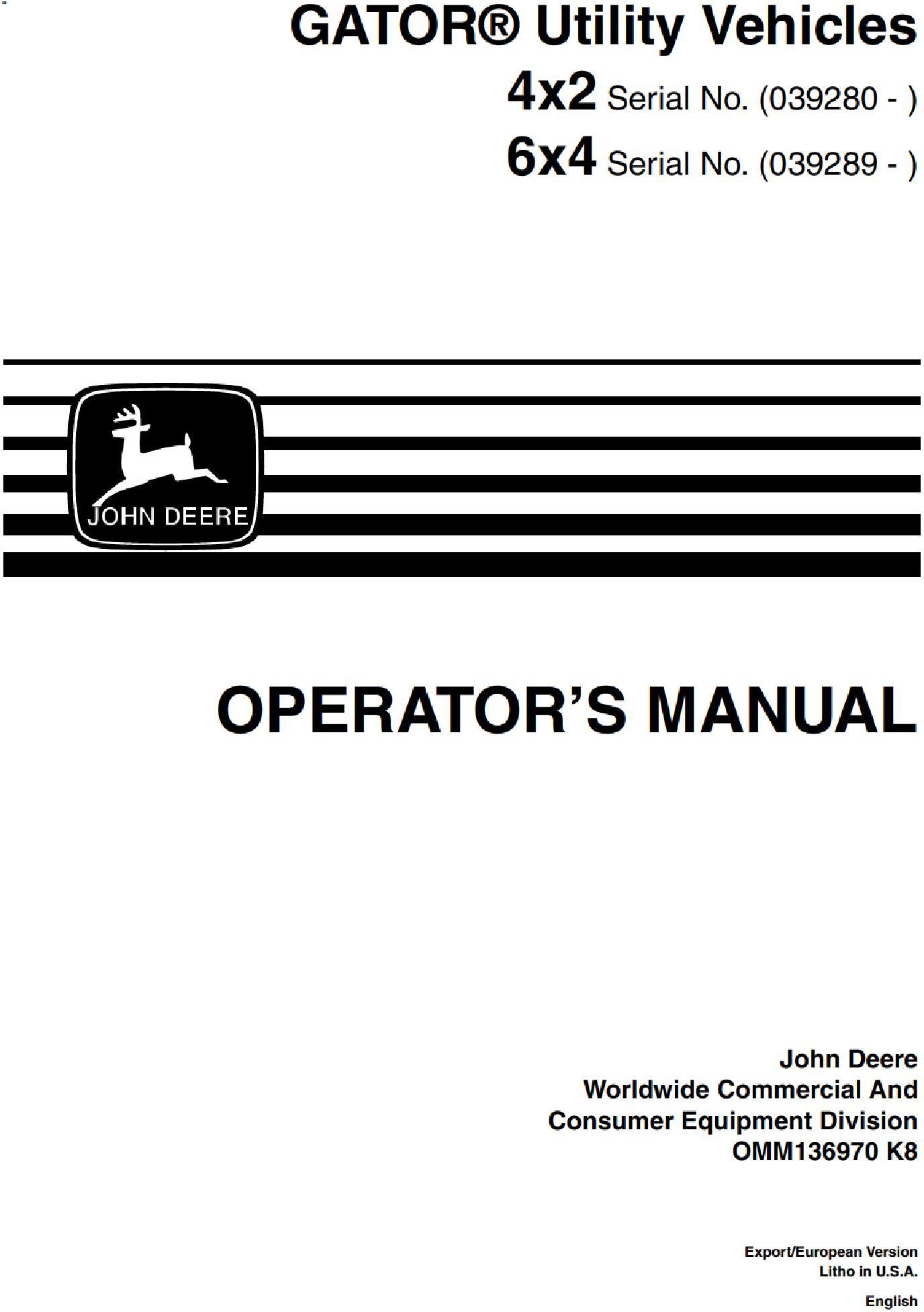 John Deere 4x2 6x4 Gator Trail Utility Vehicles Operator Manual OMM136970