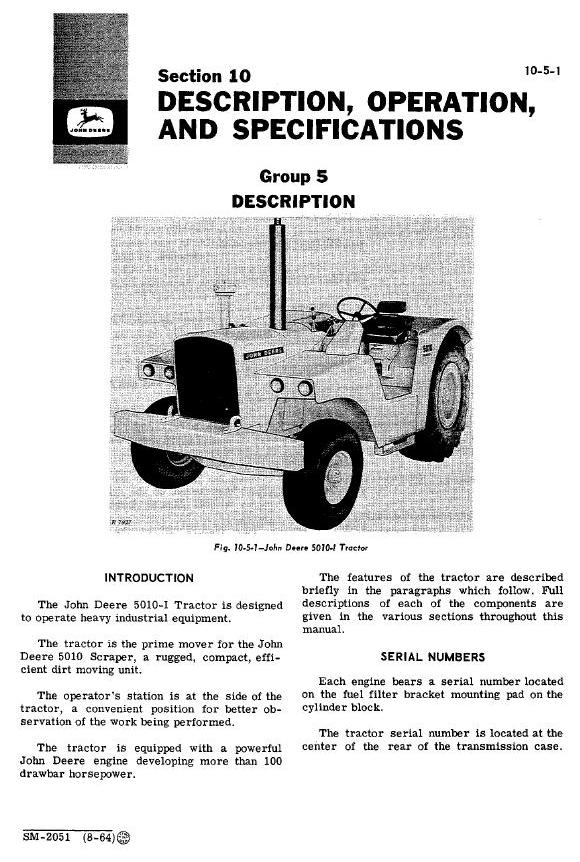 John Deere 5010 5010i Tractor Service Manual SM2051