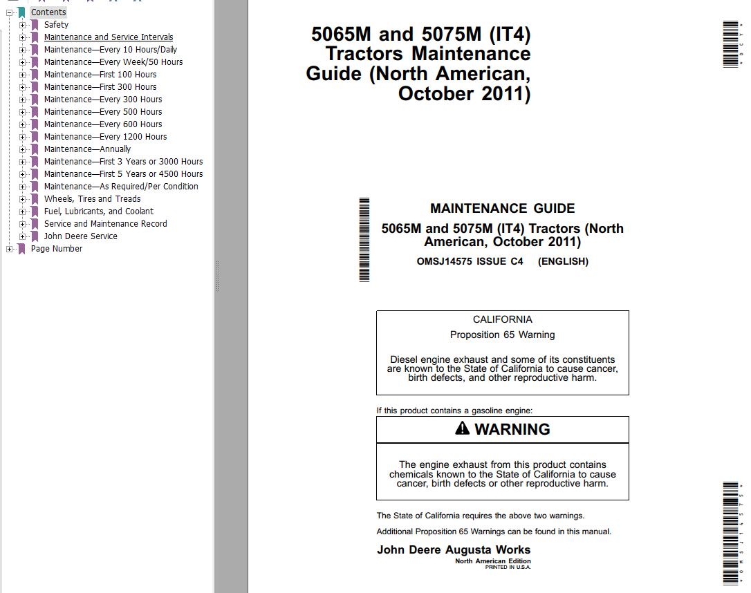 John Deere 5065M 5075M (IT4) Maintenance Guide OMSJ14575