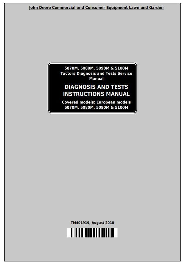 John Deere 5070M 5080M 5090M 5100M (European) Tractor Diagnostic Test Service Manual TM401919