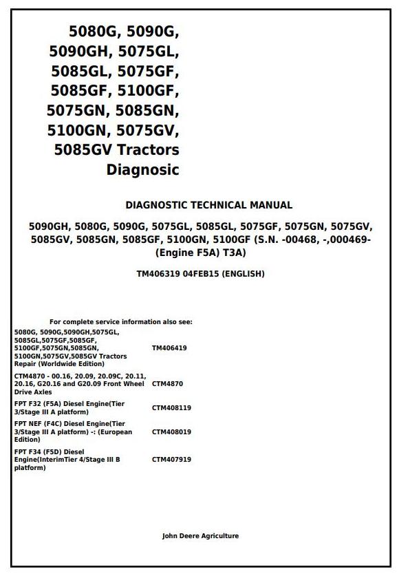 John Deere 5075G to 5100G Tractor Diagnostic Manual TM406319