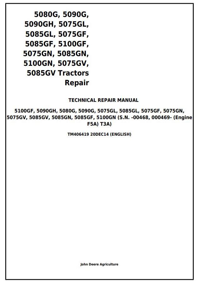 John Deere 5075G to 5100G Tractor Repair Manual TM406419