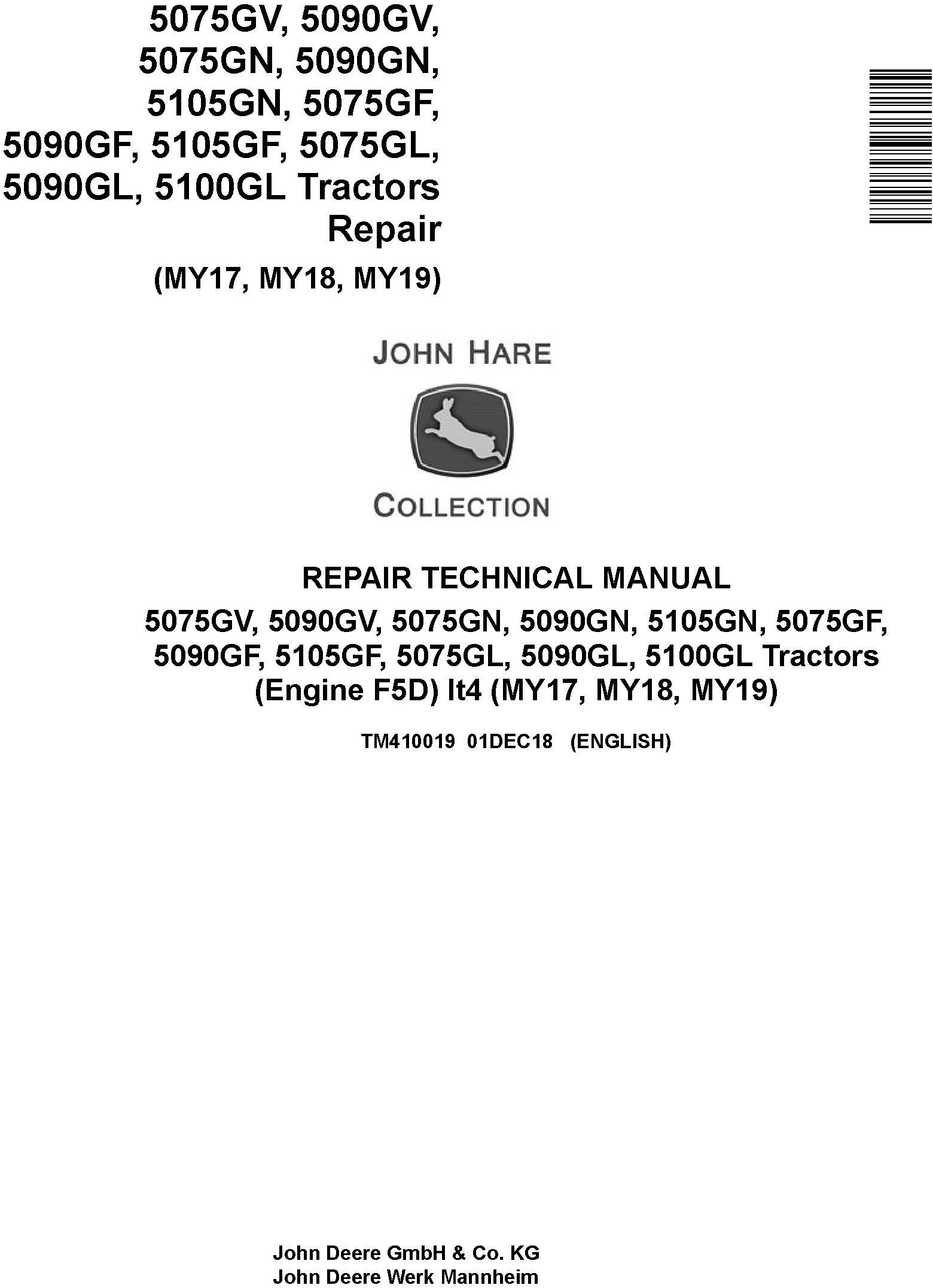 John Deere 5075G to 5105G Tractor Repair Technical Manual TM410019