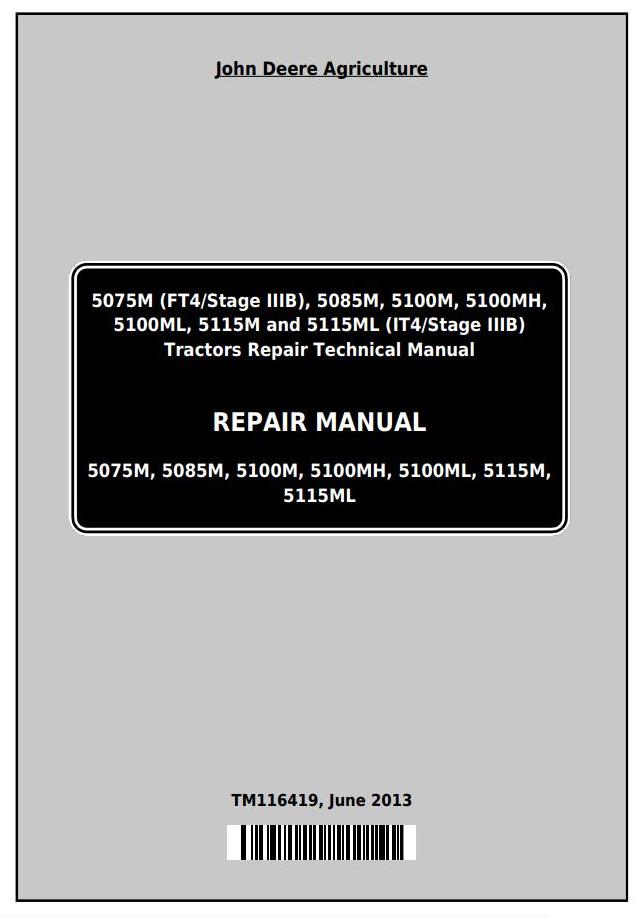 John Deere 5075M 5085M 5100M 5100MH 5100ML 5115M 5115ML Tractor Repair Technical Manual TM116419