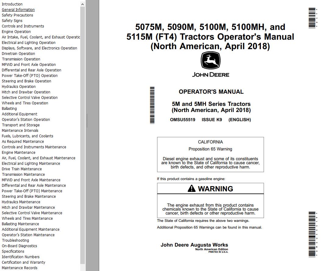 John Deere 5075M 5090M 5100M 5100MH 5115M (FT4) Operator's Manual