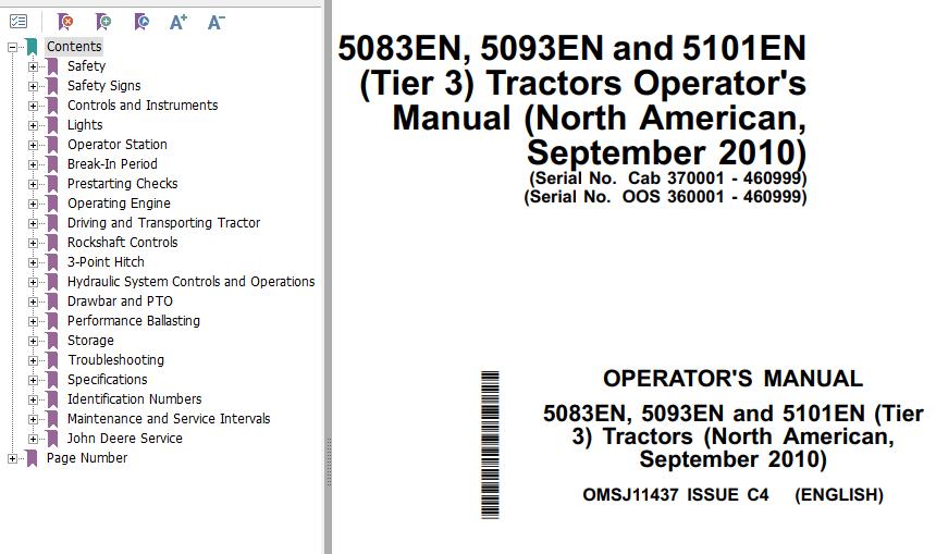 John Deere 5083EN 5093EN 5101EN (Tier 3) Operator's Manual